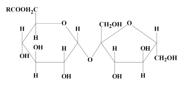 The sucrose molecule contains eight hydroxyl groups and can combine with fatty acids to form sucrose esters from mono-fatty acids to octa-fatty acids. Its chemical structure is as follows:
